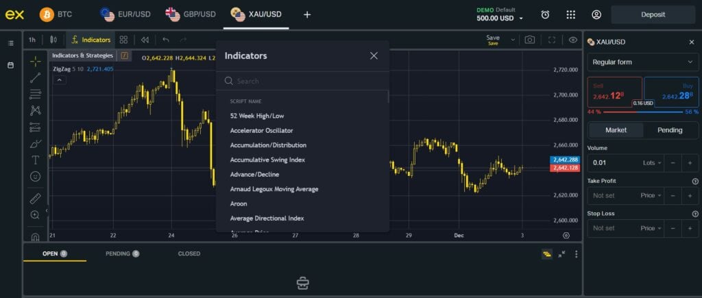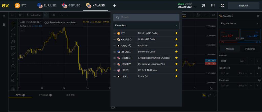 Como um trader do Brasil, a Conta Padrão da Exness permite que você negocie vários ativos, como pares de forex, commodities, índices e ações.